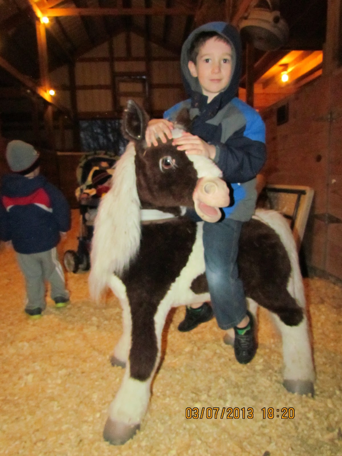 The kids thought the toy horse was pretty neat. Jack is a natural born horseman.